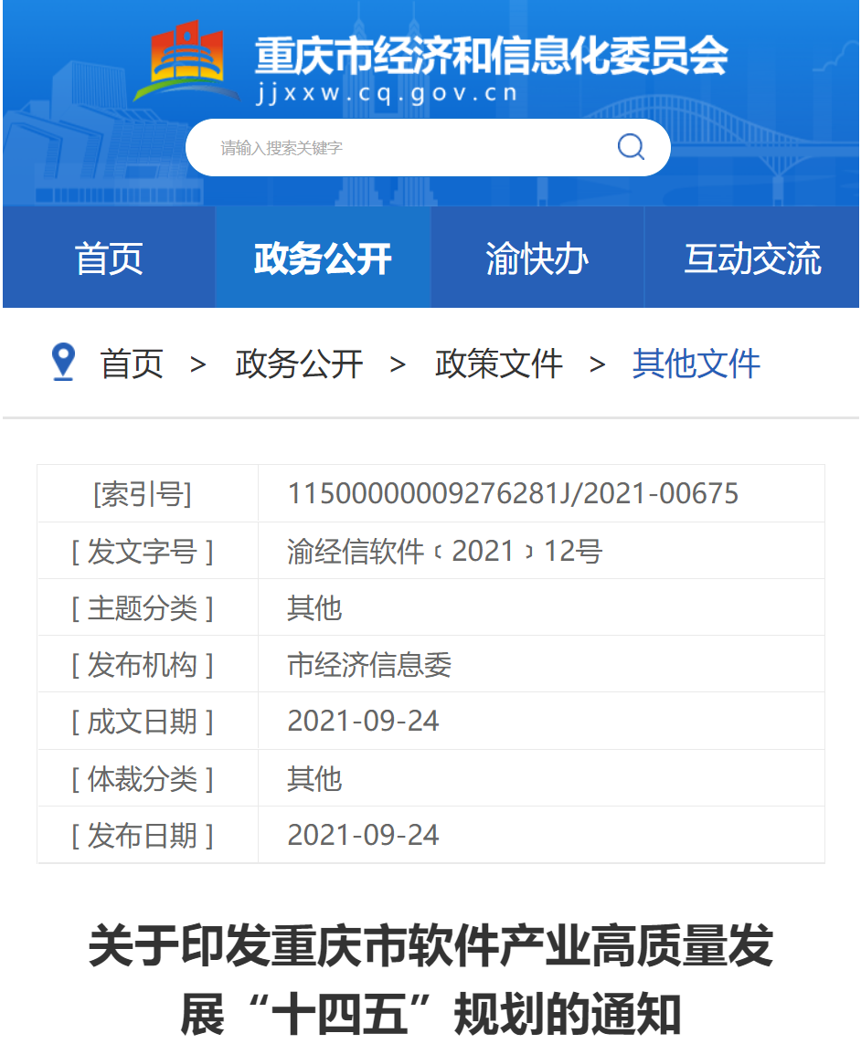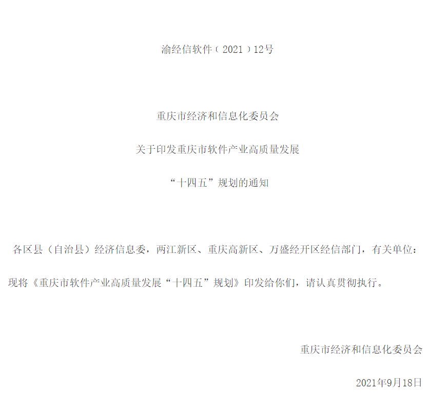 “重庆市软件产业高质量发展“十四五”规划”于近日发布,我公司成为规划重点支持建设的企业。