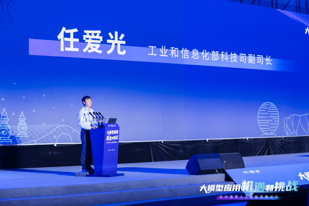 2023年5月30日,以“大模型应用机遇和挑战”为主题的杭州通用人工智能发展论坛在杭州未来科技城举行。工业和信息化部科技司副司长任爱光、杭州市人民政府副市长孙旭东、浙江省经济和信息化厅总工程师李永伟、中国信息通信研究院(以下简称“中国信通院”)党委副书记王晓丽出席论坛并致辞。中国信通院副总工程师、中国人工智能产业发展联盟副秘书长王爱华主持开幕式。
