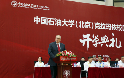 在3日的开学典礼上,东方地球物理公司总经理苟量说,克拉玛依以石油命名,孕藏着丰富的油气资源,具备完整的石油石化产业链,是中国西部最重要的石油石化基地,也是“一带一路”样板城市,中国石油大学落户克拉玛依,对于加快推动克拉玛依“世界石油城”建设具有十分重要的意义。
